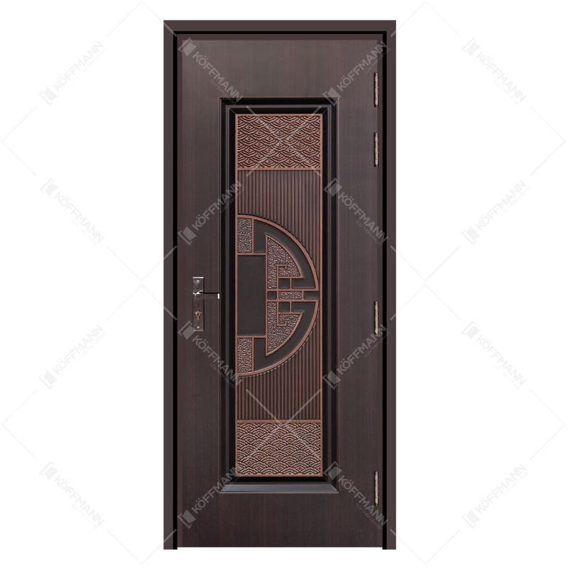 Về thiết kế màu sắc: Cửa thép Classic Koffmann với 3 tone màu chính là Thạch Lựu, Hổ Phách và Lục Bảo kết hợp với đường vân thẳng, hiệu ứng tương phản độc quyền. Sự giao thoa giữa giữa nét họa tiết Á - Âu cổ điển. Điểm đặc biệt trong thiết kế dòng sản phẩm Classic là thiết kế tràn viền cùng với những nét khắc họa tịnh tiến theo phương vô cùng, sự bền bỉ theo thời gian cũng như tôn vinh nét cổ điển, giá trị bền vững. Mô tả chi tiết sản phẩm cửa Classic KA-1.43